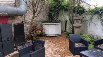 Cours sur l'arrière avec possibilité de mettre des tables. Terrasse sur le devant l'été.